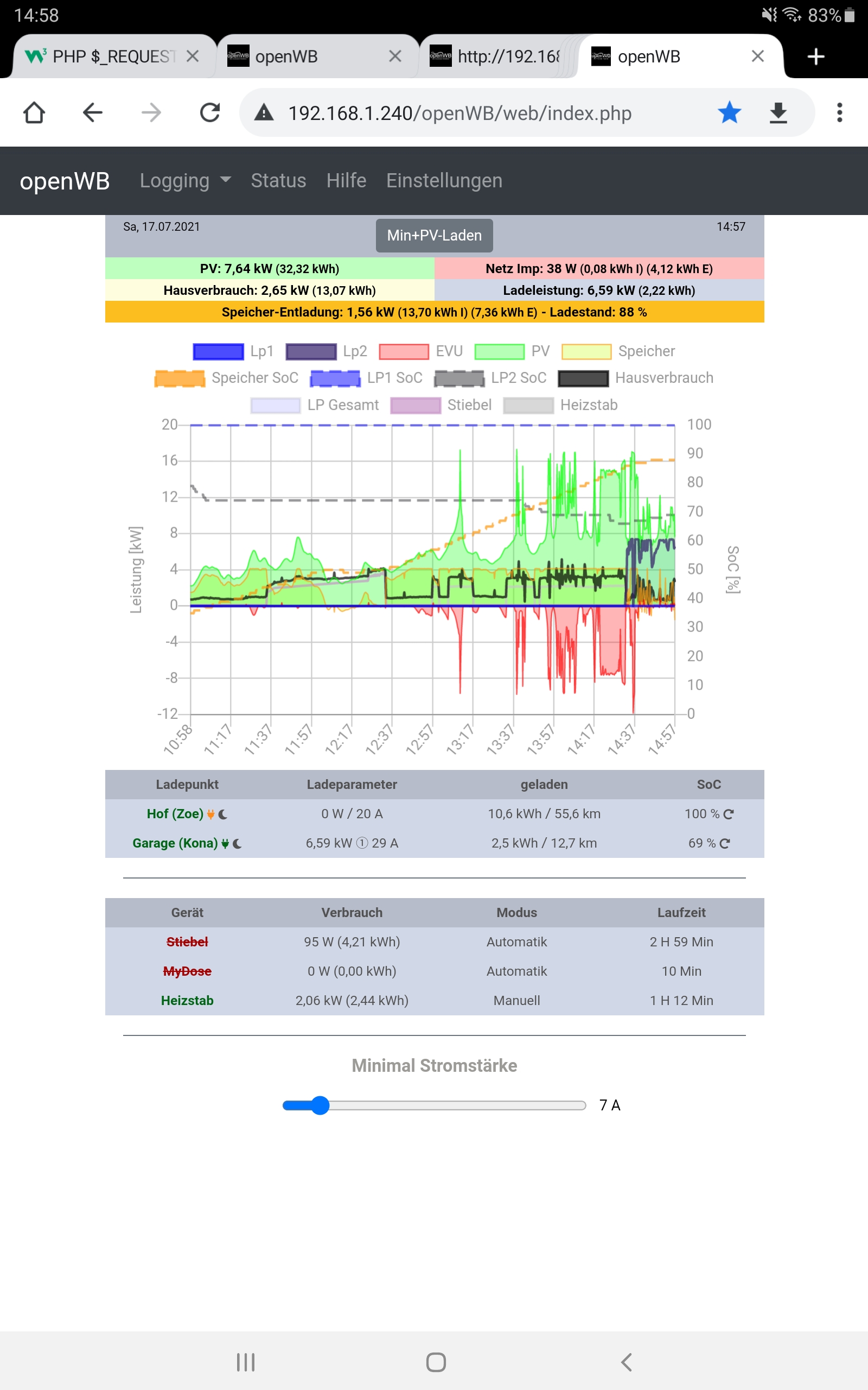 Heizstab Im Hausverbrauch Wie heute (Heizstab nicht im Hausverbrauch) Von dieser Änderung ist der Startbildschirm und das Langzeitlogging betroffen. Die anderen Loggings (Tages, Monats, Jahr) sind noch nicht umgestellt.