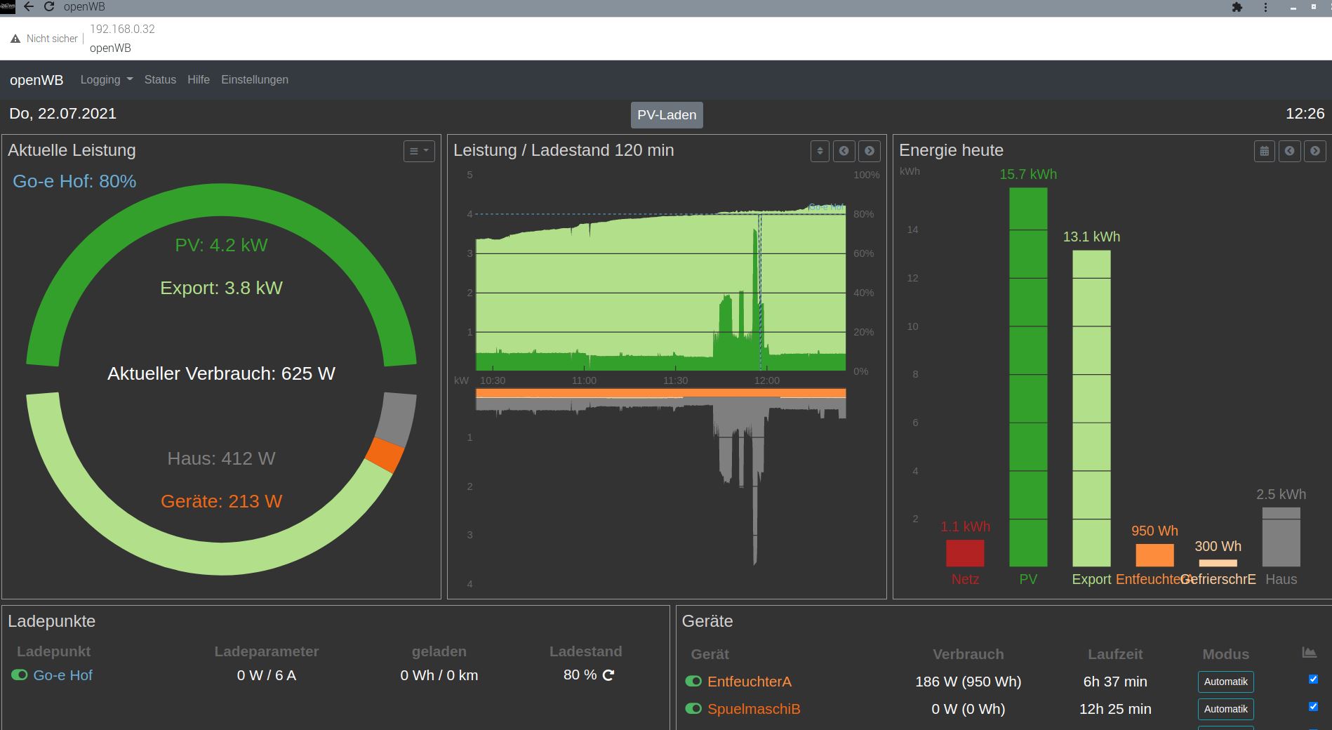 2021-07-20 17:40:51: Total Watt nicht im Hausverbrauch: 0