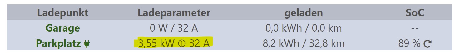 Bei 89% könnte das Fahrzeug nur noch mit red. Leistung laden wollen…