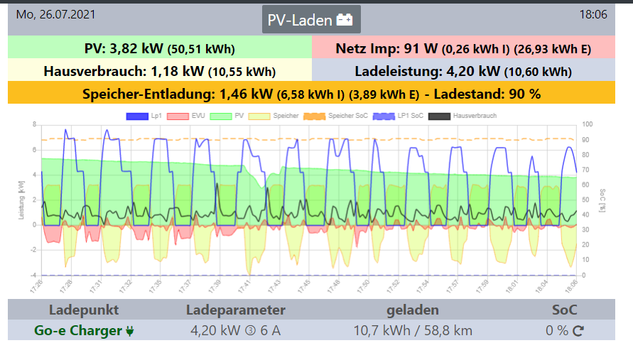 Ich mach mal einen Test wenn mehr Leistung vom Dach kommt.