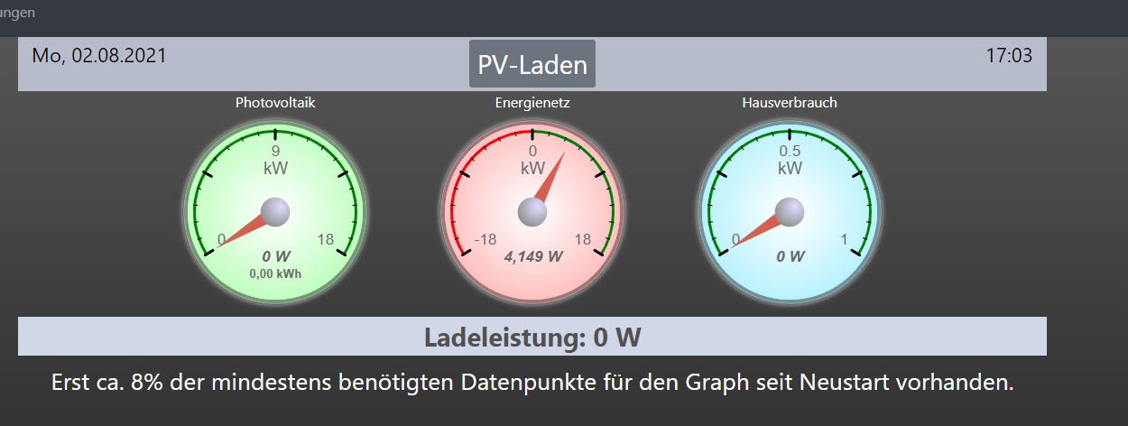 Die openWB beginnt dann den Graphen aufzubauen und lädt dann automatisch einmal "neu", dann bleibe ich auf dem genannten Schirm hängen.