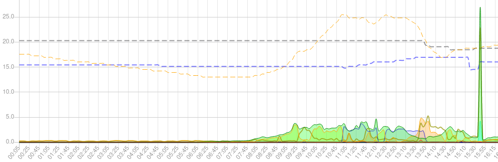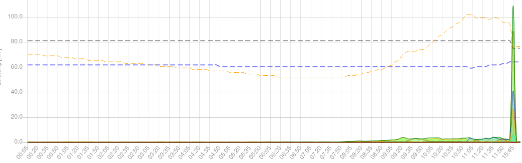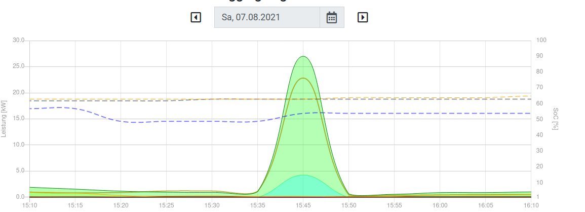 Unverständlich bleibt ein 25kW spike direkt vor der Wiederherstellung im Tageslog: