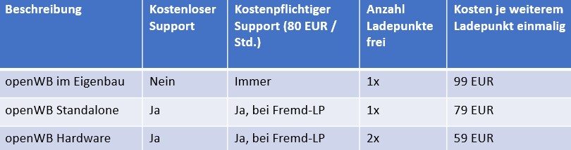 Wenn ich das beispielsweise nach der Darstellung aufbaue, dann weiß jeder Kunde, dass er für seine openWB kostenlosen Support für die "openWB selbst" erhält, für Support in Richtung Fremd-LP jedoch Kosten zu tragen hat - Punkt. Das ist doch eigentlich nicht so schwer zu lösen?