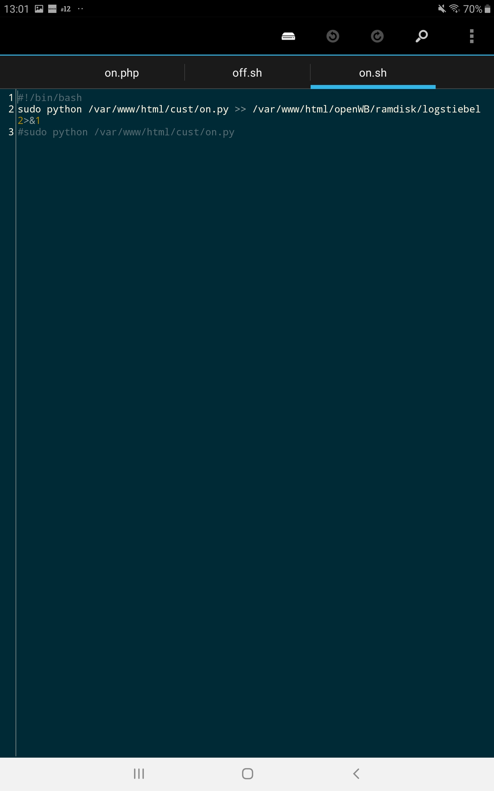 Datei on.sh anlegen