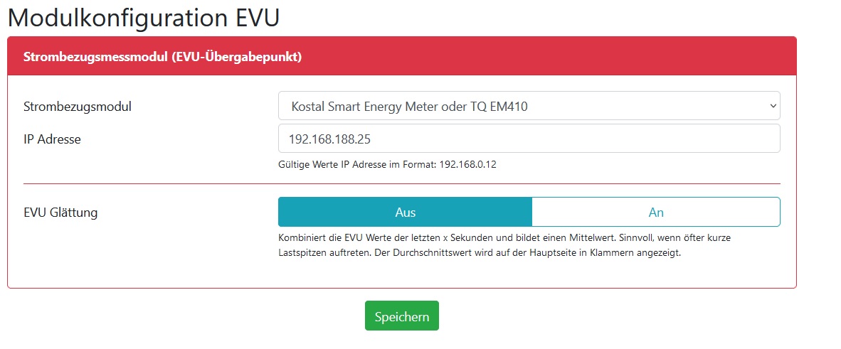 Folgende Moduleinstellungen PV und EVU sind drin: