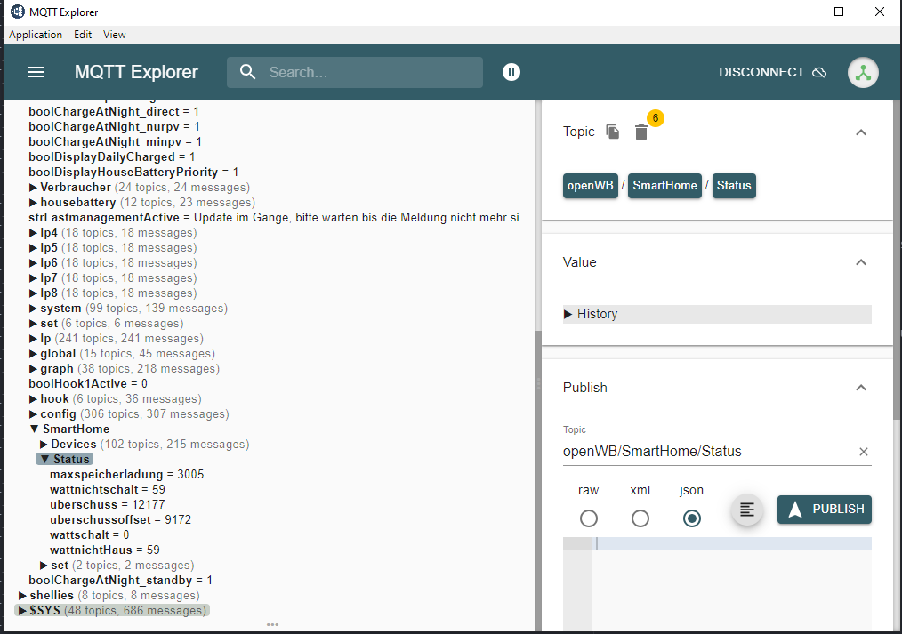 mqtt Variable openWB/SmartHome/Status/wattnichtHaus