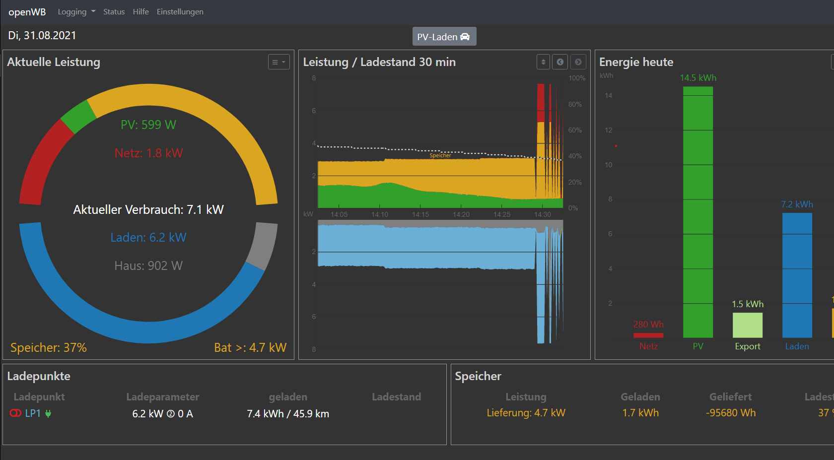 Kann Dein Speicher etwas bewirken? Dieser wird nicht aktiv von oWB gesteuert. - Der hat abgegeben da ja 6.9kW gezogen wurden