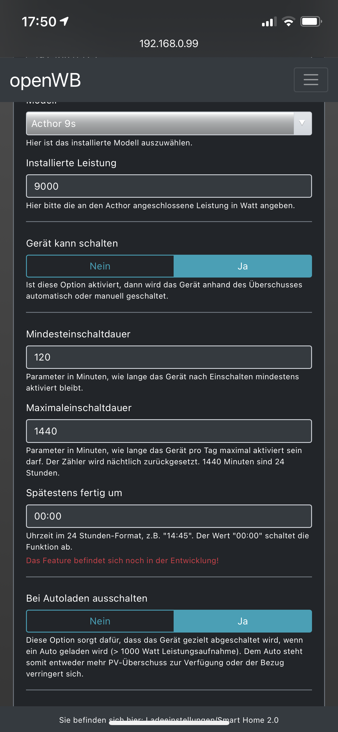 ich habe heute die ELWA-E in der openwb konfiguriert bzw. als smarthome eingerichtet (und im Sunny Home Manager/ Portal) deaktiviert, die Einrichtung ist wie folgt: Die ELWA-E wird auch richtig angesteuert und schaltet korrekt ein bzw. aus.