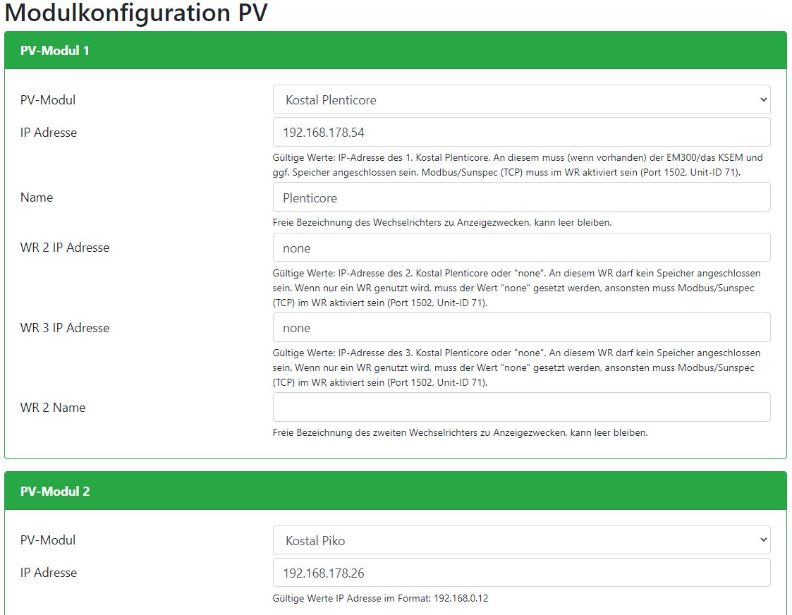 mir ist aufgefallen, dass die openWB zwar beide meiner PV-Module ausliest und die aktuelle Produktion passt, aber der Ertrag nicht passt.