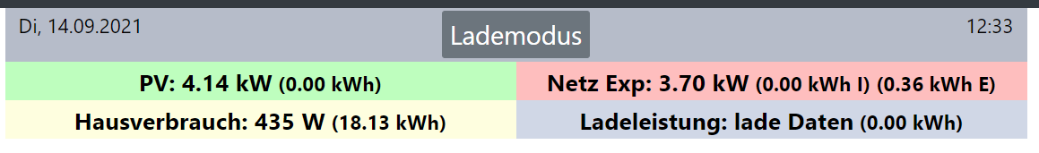 6.76kWp PV mit SMA Tripower 6000TL-20. 2x OpenWB custom 1p3p. EVU/PV über SDM630 via PE11-H. Victron MP2 48/5000 als ESS mit 16s EVE 280Ah Zellen. PHEV Landrover Defender P400e. EV vW eUp