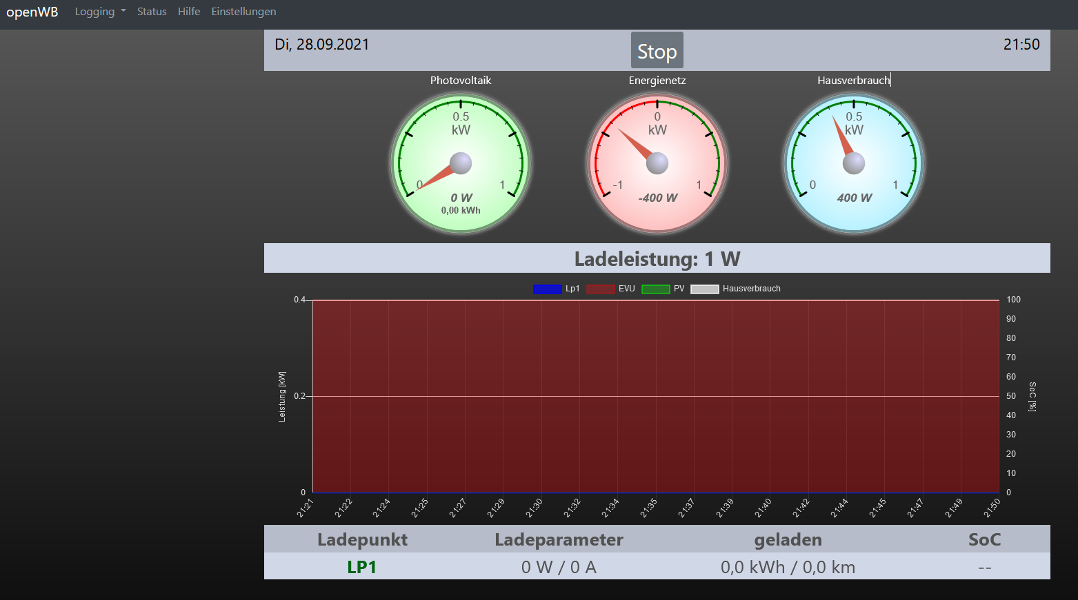 Auf dem Display sind immer 400W Hausverbrauch in der Anzeige und das ändert sich auch nicht. siehe Anhang