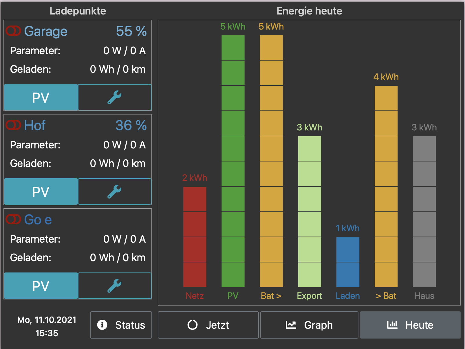 Es gibt ja 3 Themen zur Auswahl, die soweit auch viele Informationen widerspiegeln. Wäre es auch möglich, ein Theme anzuzeigen, welches z.B. Tageserträge (PV/Imp/Exp) und Verbraucher anzeigt, die man dann auch manuell schalten kann.