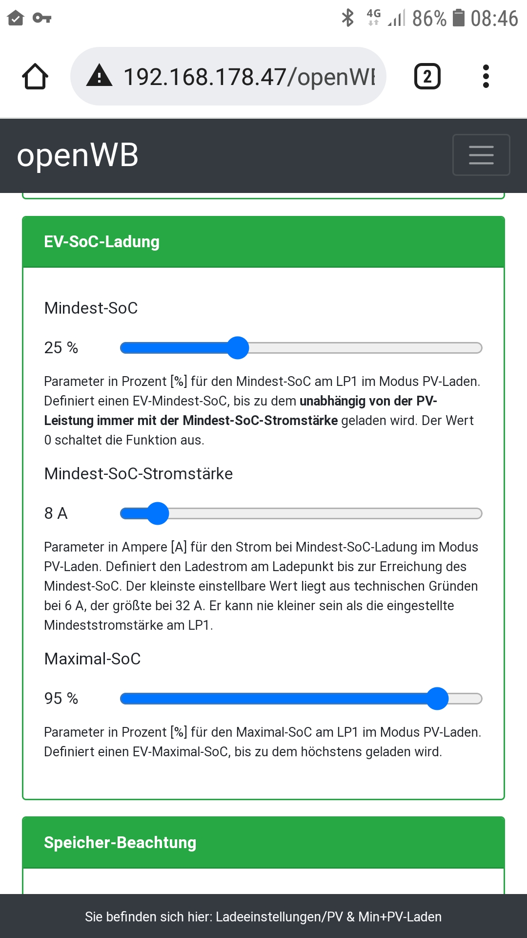 Dort solltest Du den SoC Deiner Wahl eintragen, auf den max. geladen werden soll.