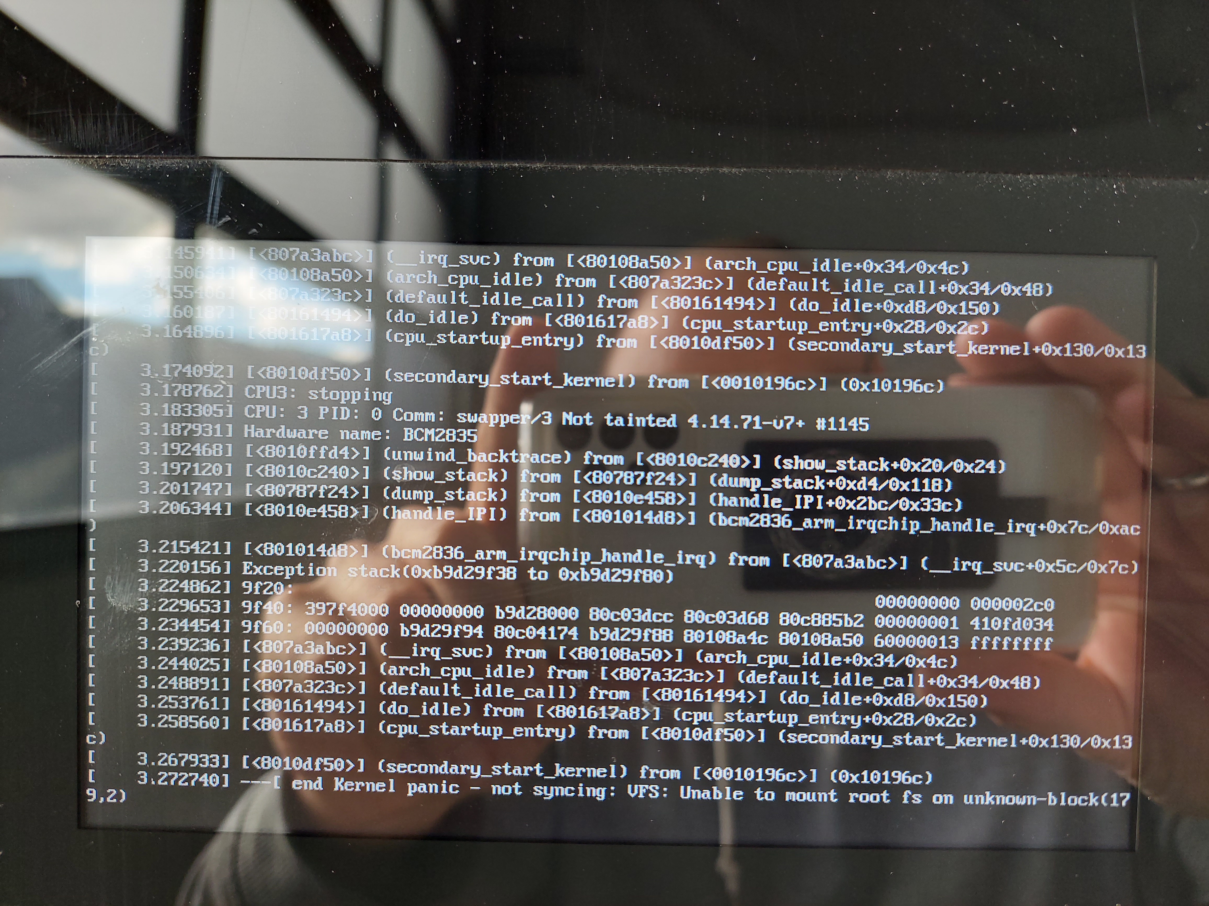 Aktuelles Fehlerbild nach dem Reboot über die Weboberfläche und Versuch eines Hard Reset am Hauptschalter.