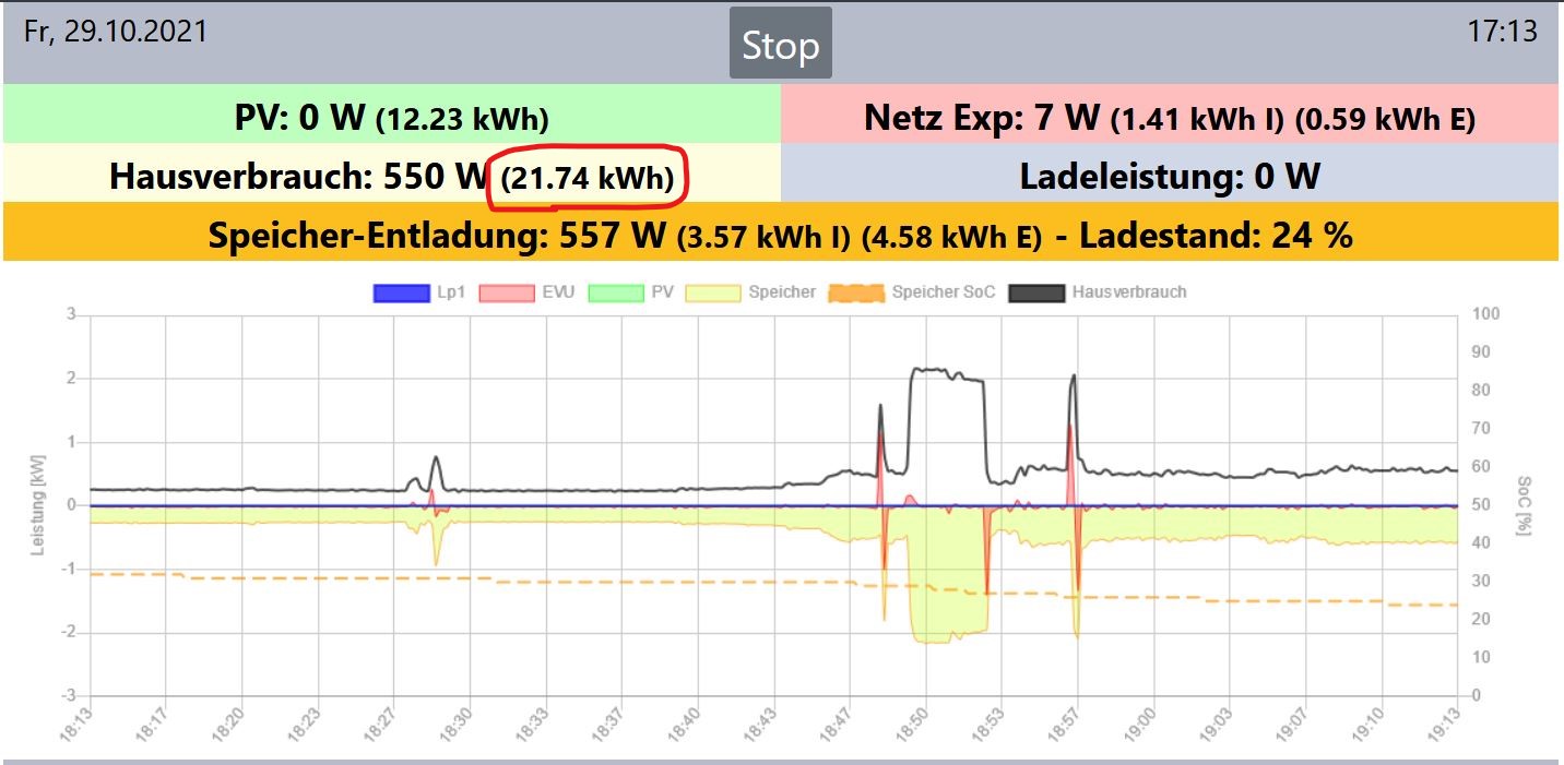 aktueller Hausverbrauch in openWB: über 21 kWh (viel zu hoch)