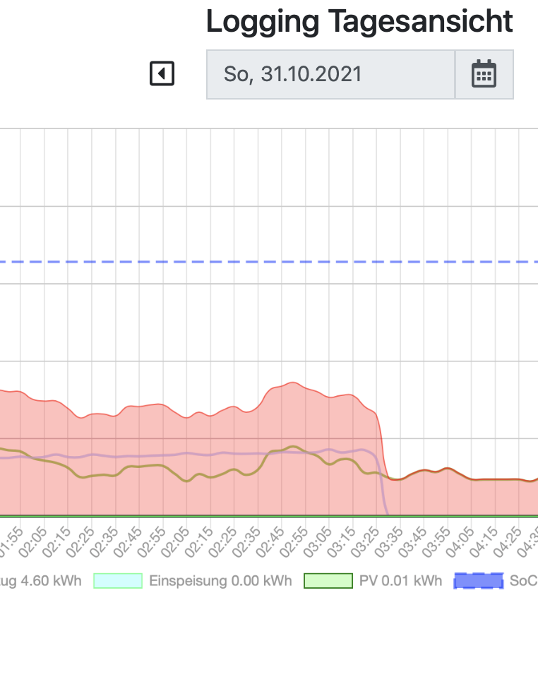 Dann realisiert, dass das an der Zeitumstellung heute Nacht lag. Werte für den Zeitraum zwischen 2 und 3 liegen ja zweimal vor und wurden hier im Graph dann einfach "übereinandergedruckt"...