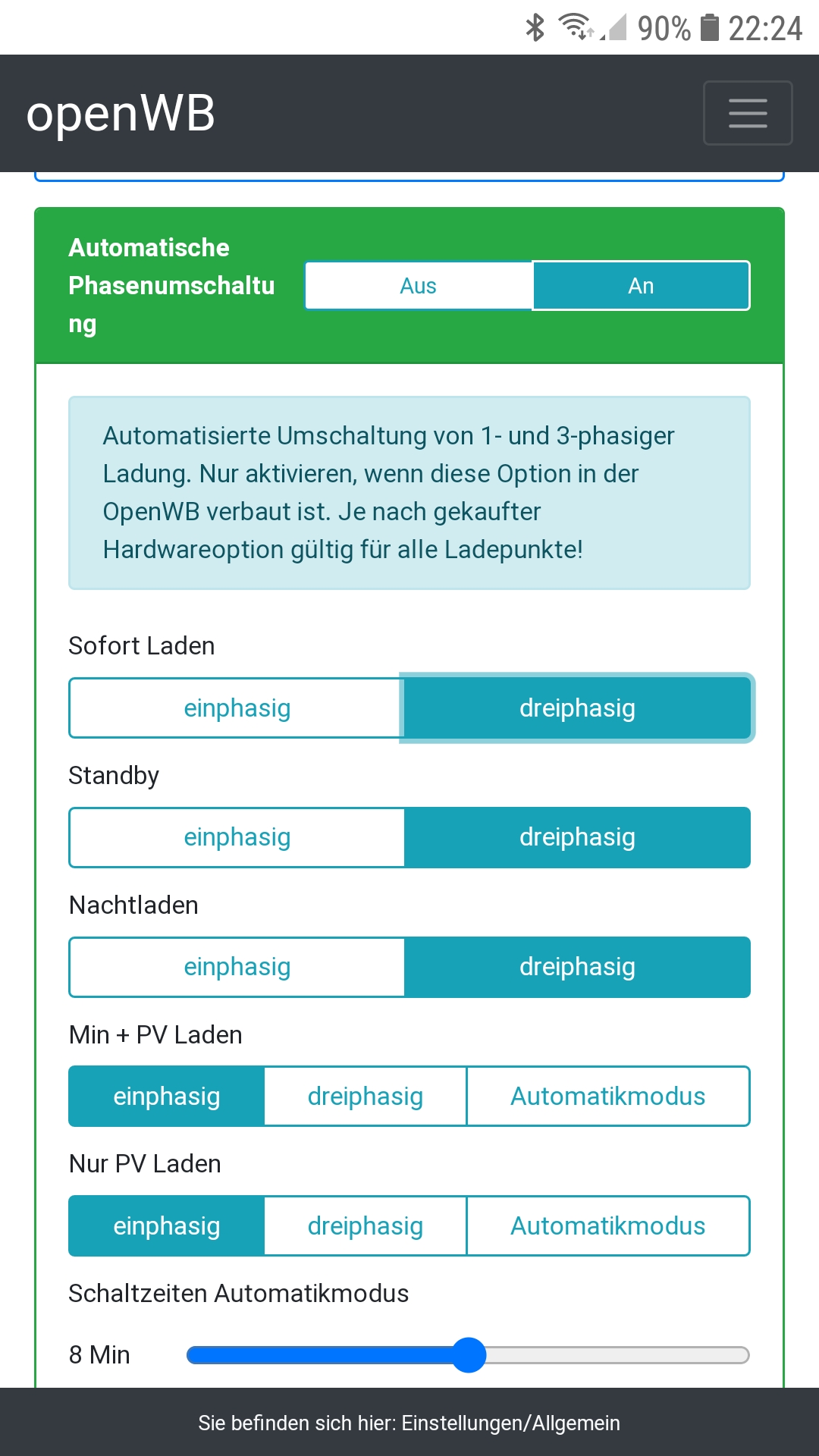 Ich erinnere mich, dass bei der initialen Inbetriebnahme ebenfalls nur 1-phasig geladen wurde. Ich weiß nicht mehr, was ich genau getan habe, damit sich das Problem behebt.