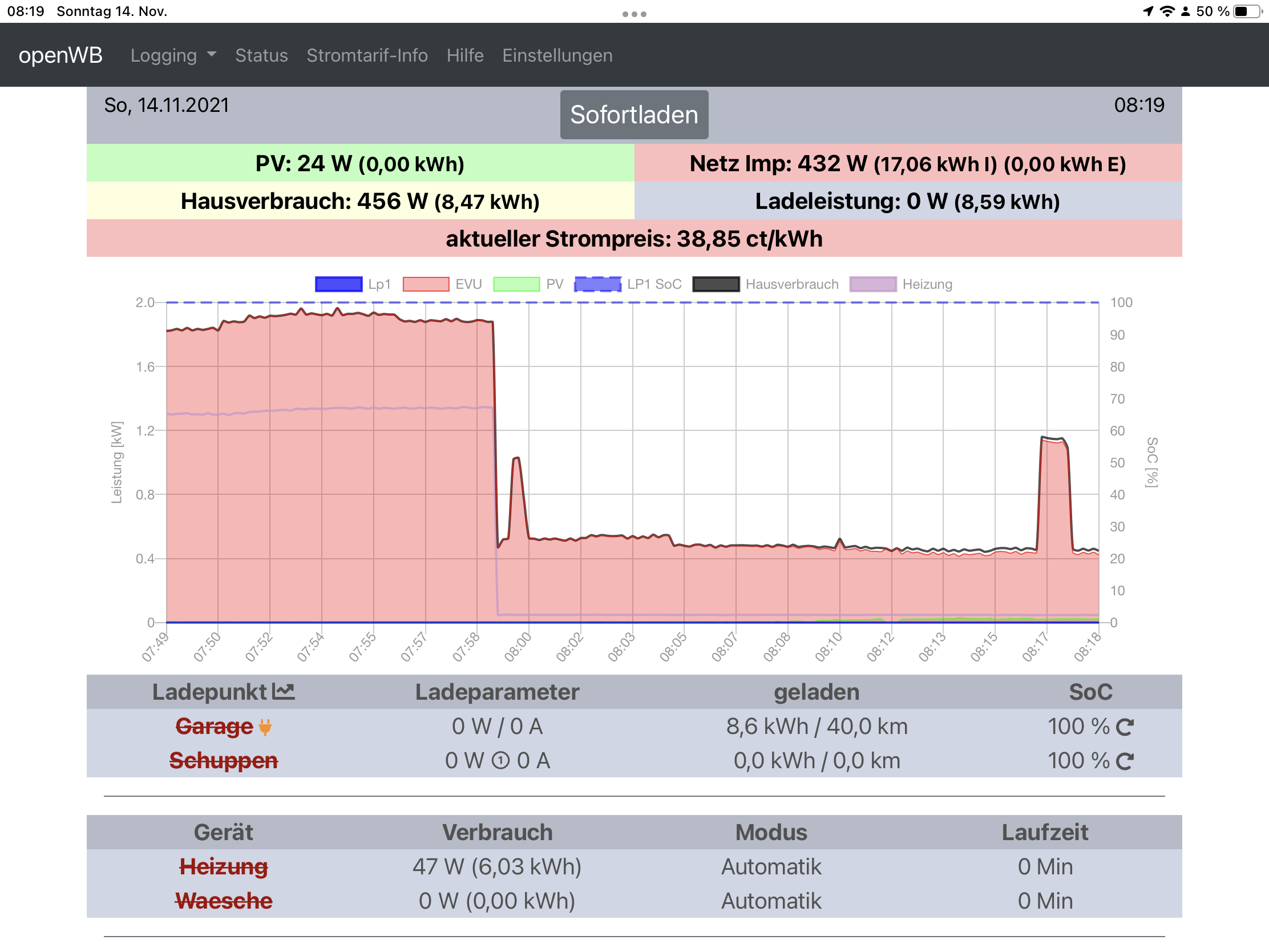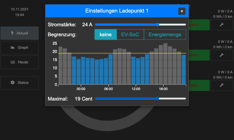 fussi24@web.de hat geschrieben: Mo Nov 08, 2021 4:55 pm Gibt es die Möglichkeit beim Sofortladen auch den dynamischen Strompreis, bei mir Tibber, als Balken darzustellen?