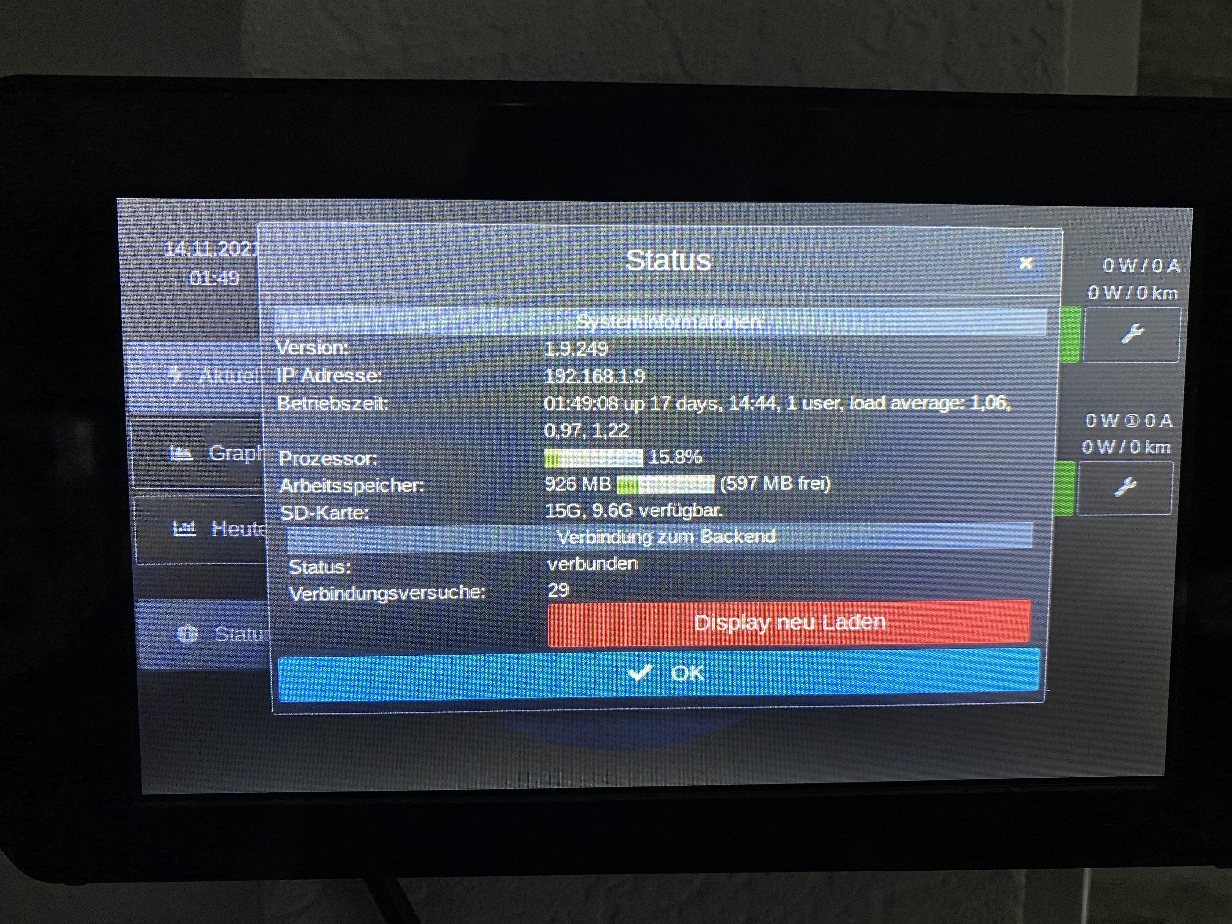 Auf dem Display ist es ja auch mitten in der Nacht (01:49 Uhr) und der SoC wird ja auch nicht korrekt angezeigt.