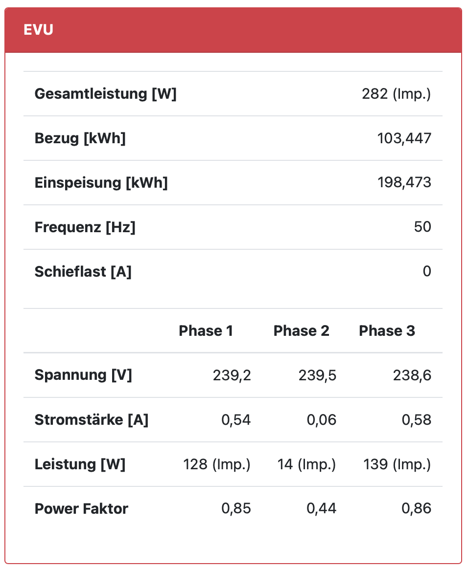 Könntest Du mal bitte zum Vergleich Deinen Status/ EVU hier posten? Du hast doch das bessere SmartMeter drin.vuffiraa hat geschrieben: Do Nov 11, 2021 6:18 pm Lass uns mal schauen, welche Daten wirklich aus dem Fronius ausgelesen werden.