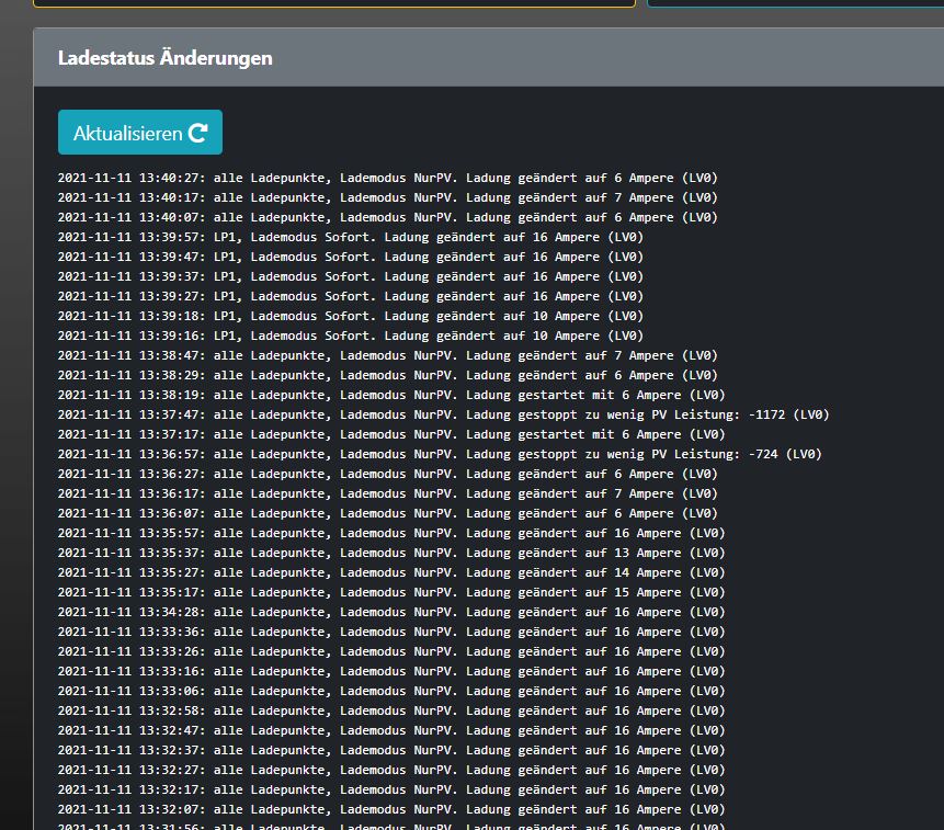 Im Status werden die Momentanwerte zurückgegeben. Im letzten Status sehe ich, dass mit 1p und 7A in diesem Moment geladen wird.
