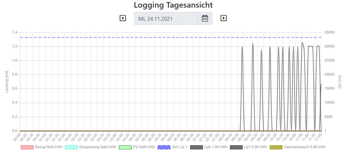 Hier das versprochene Bild mit PV und Ladung: Hab gestern die Kompatibilität auf Variante 1 gesetzt. Dennoch keine Änderung: Was mir noch aufgefallen ist: Der Langzeitgraph funktioniert meiner Meinung nach. Wenn ich ihn nicht verschieben. Sobald ich mir alte Daten anschauen möchte und nach links scrolle wird nichts mehr angezeigt? Ein Fehler oder normales Verhalten? Unterschiedliche Browser zeigen alle das gleiche Verhalten.