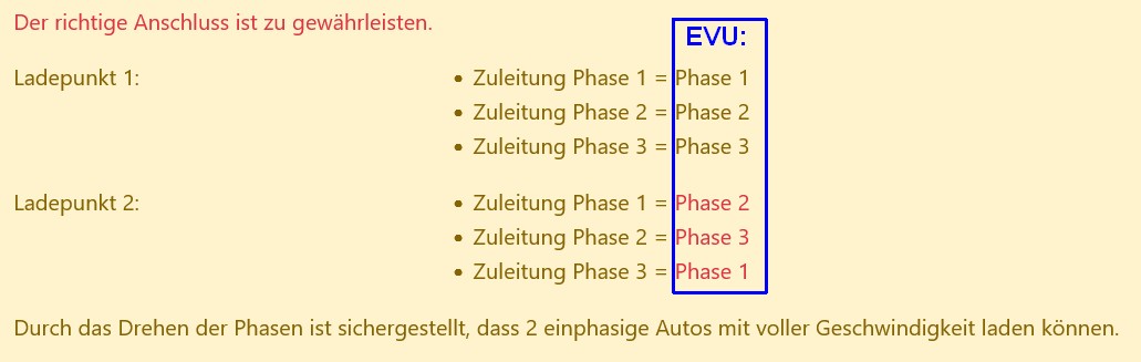 Kurzer Ausblick: In 2.0 kann für jeden LP angegeben werden, wo dessen L1 am EVU angeschlossen ist. Das Lastmanagement weiß dann genau, welche LP bei Schief- oder Überlast zu begrenzen sind. Loadmanagement ist durch "virtuelle Zähler" realisiert, hinter die man die gemeinsam zu begrenzenden LP schieben kann. Alternativ kann auch ein Zwischenzähler in Hardware realisiert werden, wenn noch weitere Verbraucher angeschlossen sind.