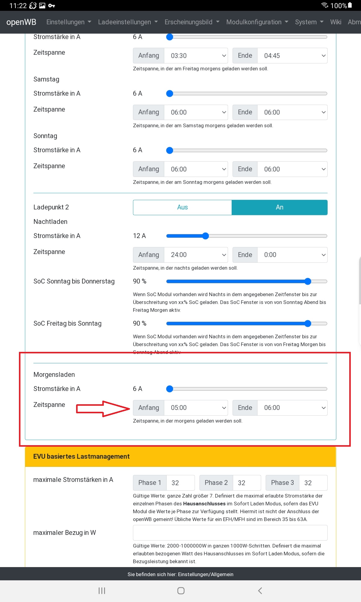Das Nachtladen wollte ich deaktiviert haben, damit schalte ich aber auch das "morgens Laden" aus. Wo ist mein Denkfehler bzw. was mache ich falsch...?