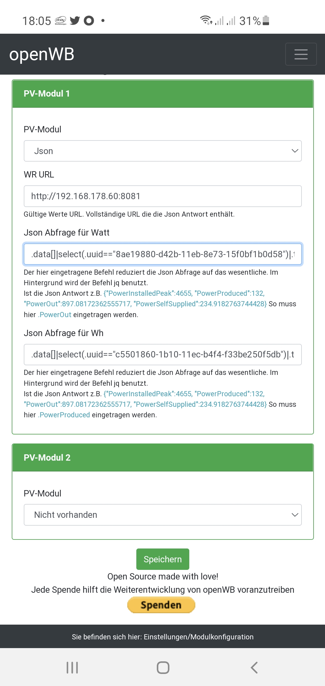 Hier ein Beispiel, wie das bei meinem PV Modul aussieht.