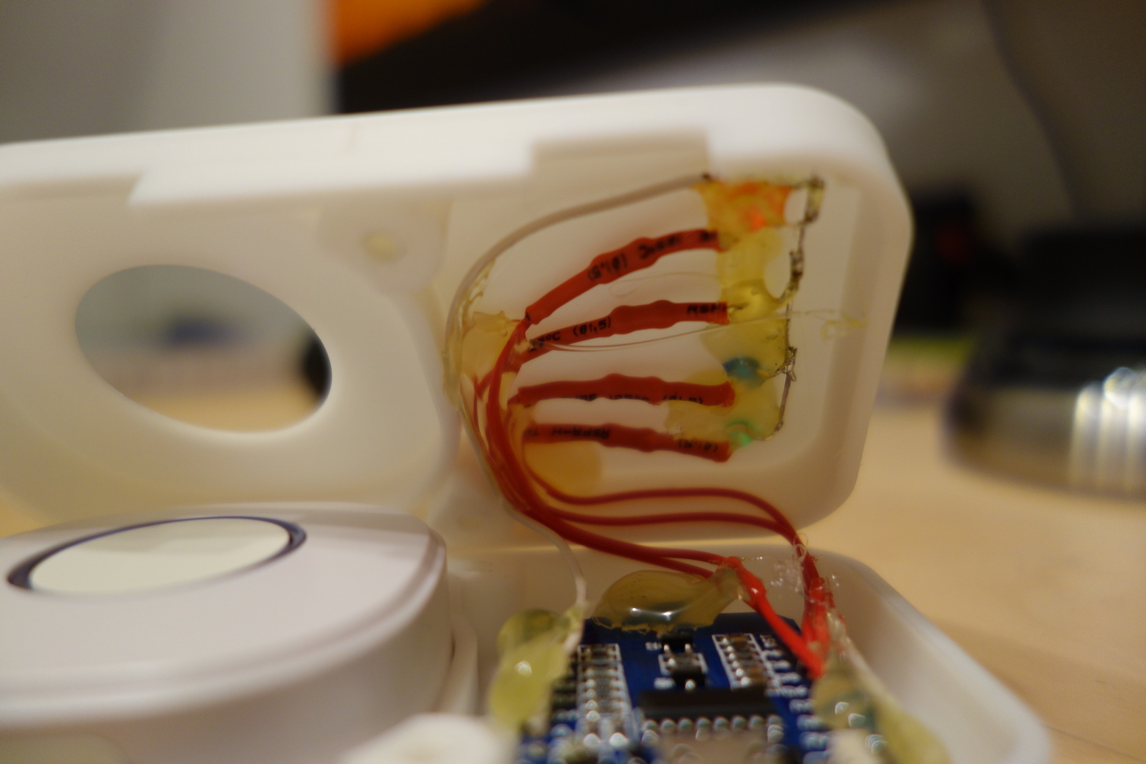schick! Alternativ zu den LEDs könnte man auch ein 0,96" OLED einbauen. Mein Setup hat es über den fliegend verdrahteten Zustand nie hinaus geschafft, tut so aber aber gut deinen Job.