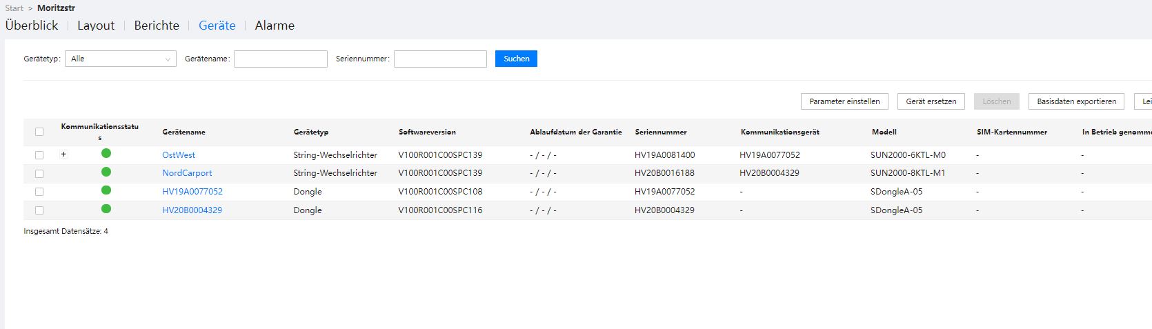 Ja es ist an beiden Wechselrichtern ein Dongle angeschlossen. Bei beiden ist unten ein Netzwerkkabel dran, welches zum Router führt.