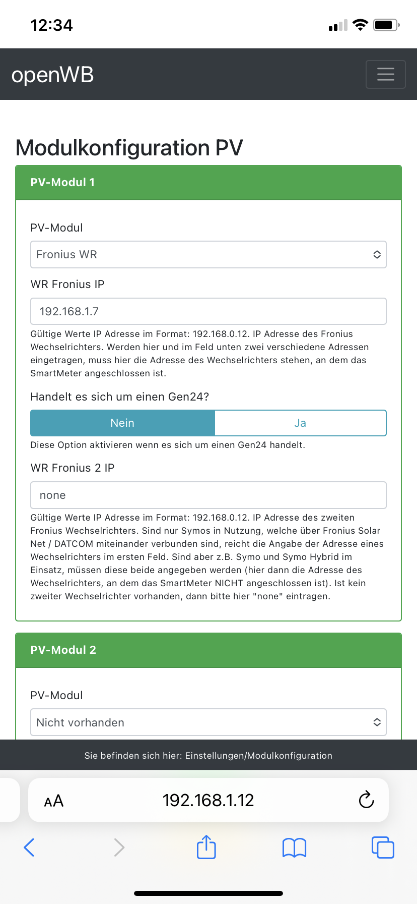 Könnt ihr mal probeweise in der Modulkonfuguration PV die Einstellung für "Handelt es sich um einen Gen24?" auf "Nein" setzen?