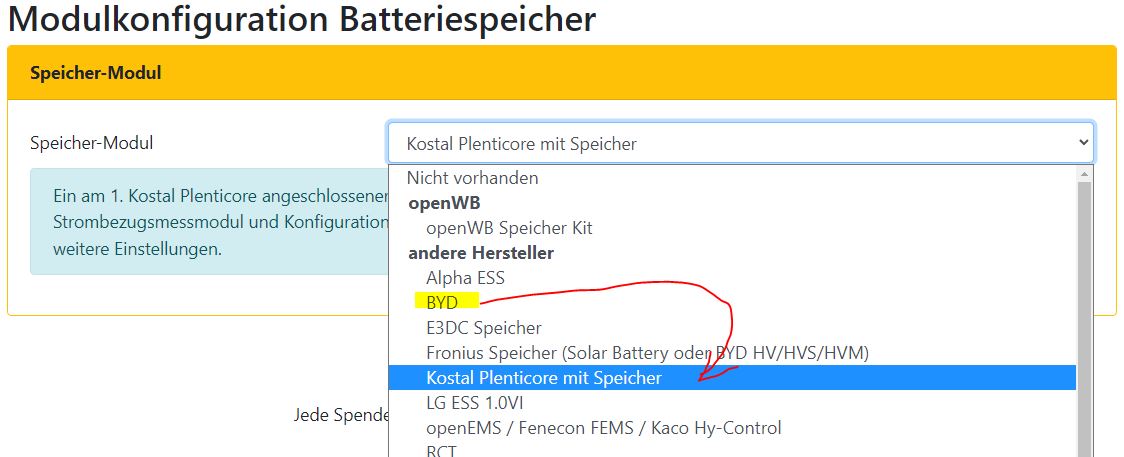 Als Speichermodul plenticore gewählt und nicht byd, oder?