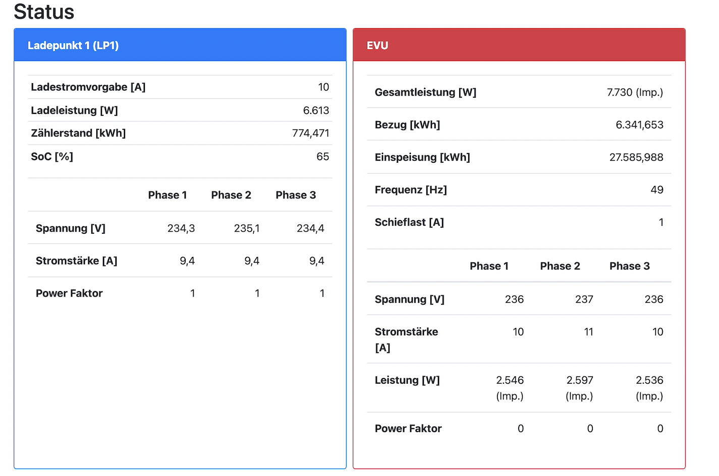 Weierhin ist der Vorgabestrom lt. Status auf 10 A eingestellt.