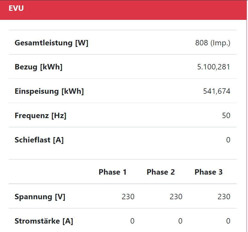 Dort haben sie die Leistungsmesser gebracht. Theoretisch könnten die auch bei einer anderen Modbus adresse liegen. Erwartet wird der Evu Zähler bei Modbus 40130