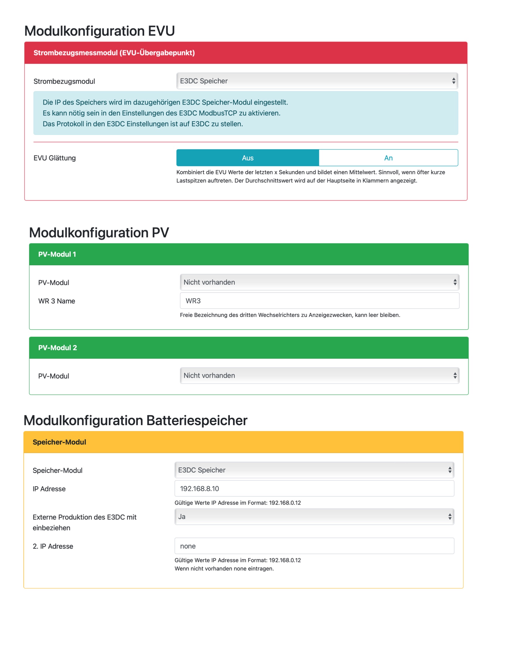 -- E3dc mit eigenen Solarpannels ( und pv wr1 ungleich none). D.h es ist in openwb noch ein zusätzliche Pv Anlage definiert.