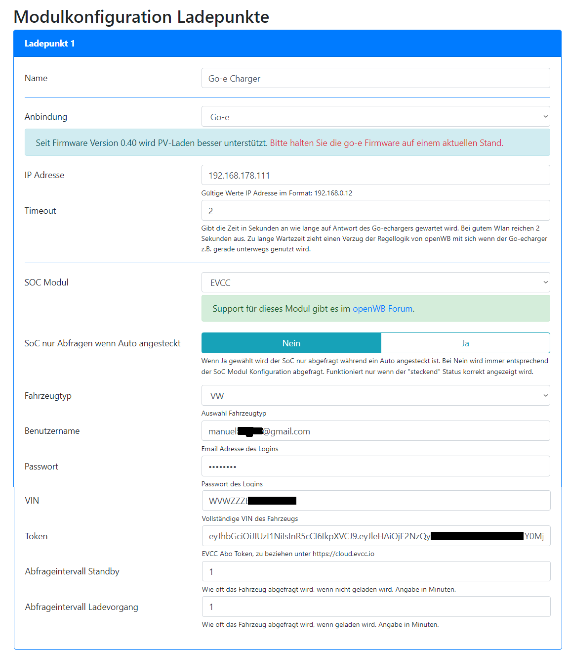Hab bereits Unterstützung und Prüfung von EVCC bekommen, da kommen die Daten auch an,