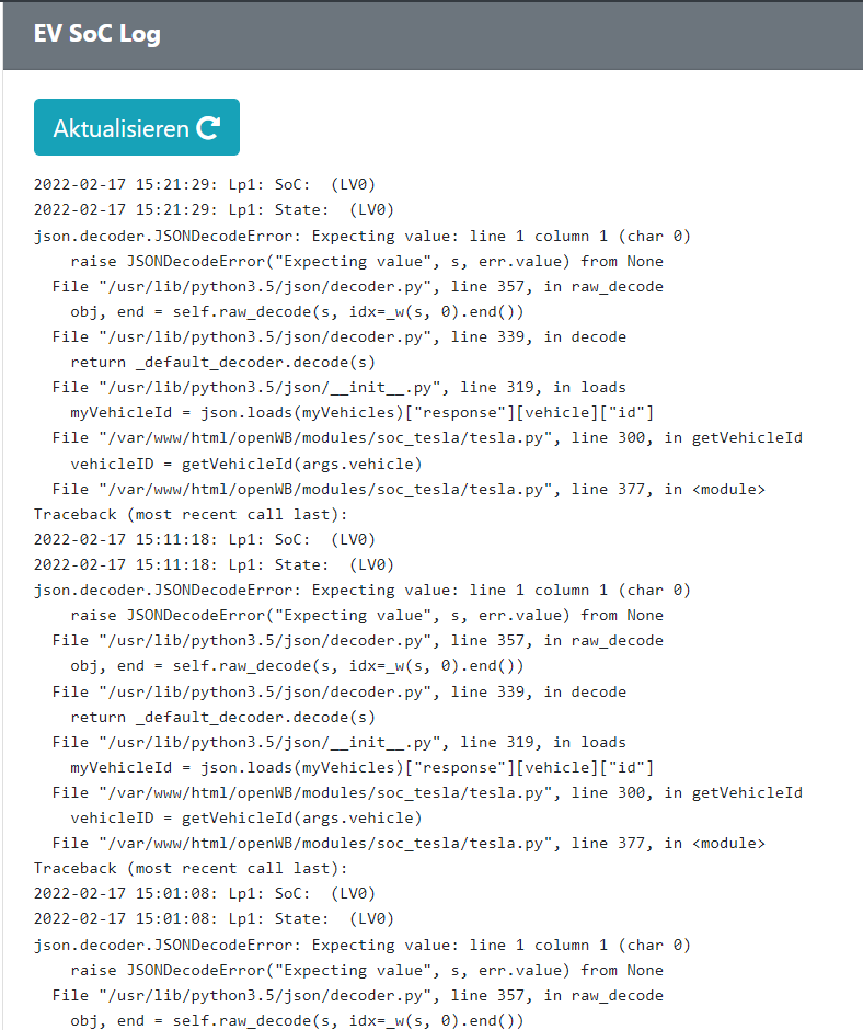 Bei mir geht die SOC Abfrage zu Tesla nicht mehr.