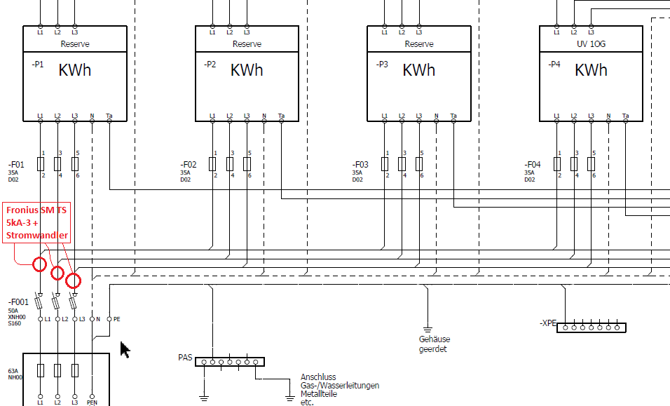 Habe es heute zum HV geschafft (steht in einem anderen Trakt). Das Sichtfenster zeigt den EVU-Punkt und die VZS ganz schön. Idealerweise werde ich versuchen nach dem Trenner (also oberhalb) per Stromwandler (Fronius SM TS k5kA-3, 100A/5 CT´s) abzugreifen. Zur Not unterhalb (ist ja mehr als genug Platz :-))