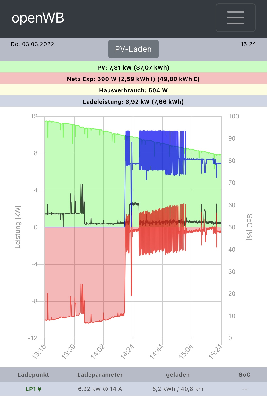Bei meiner openwb custom series 2 im Modus nur PV laden, entsteht in einem bestimmten Bereich ein sprunghaftes Übersteuern und Untersteuern.