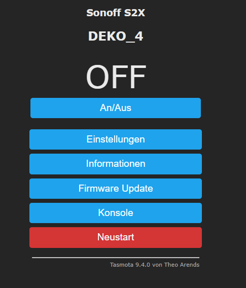http://<device-ip>/cm?cmnd=Power%20offWenn es nicht geht könnte das Template in der Tasmota Configuration falsch sein.