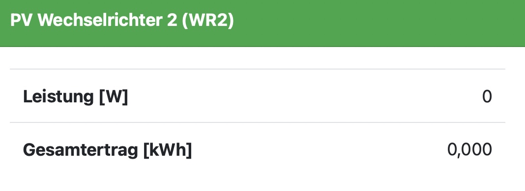 Seltsamerweise gibt es auch keinen Hausverbrauch mehr sobald der 2. WR produziert. Liegt aber möglicherweise daran, dass der Verbrauch höher ist als die Produktion (was ja unlogisch ist). Wenn ich den 2. WR ausschalt, dann passt wieder alles: