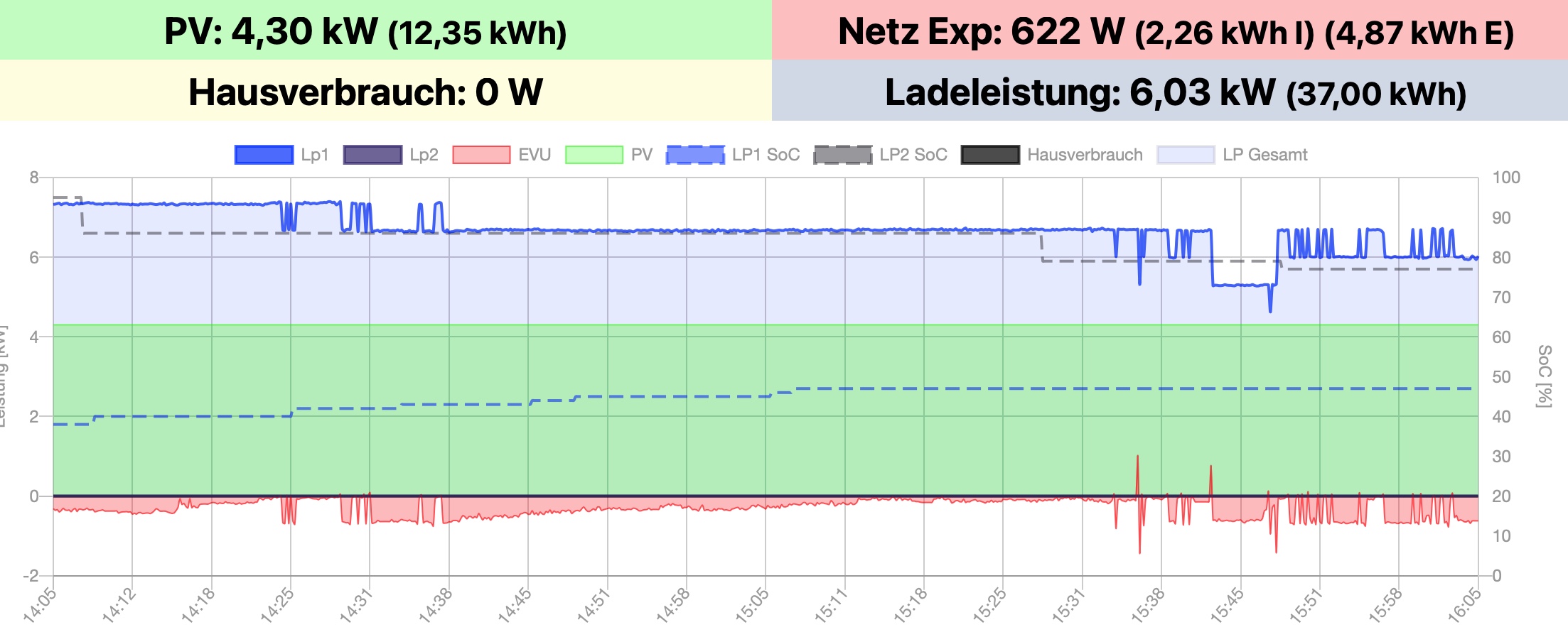 Auch der Wert der PV-Tagesdaten ändert sich nicht mehr. "Laden", Export und Netz aber schon.