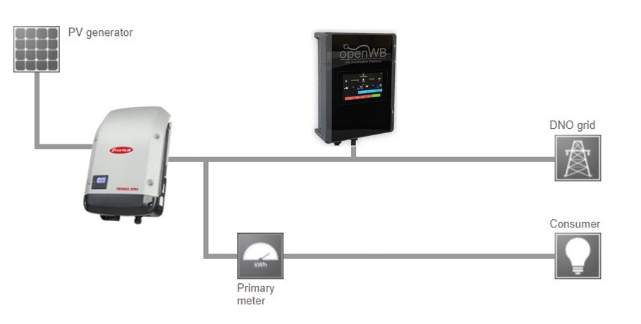 Der S0-Zähler des Fronius WR muss auch den Verbrauch der OpenWB erfassen.