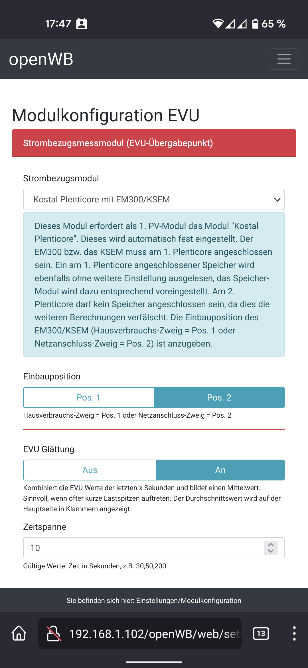Was hast Du für ein EVU-Modul?