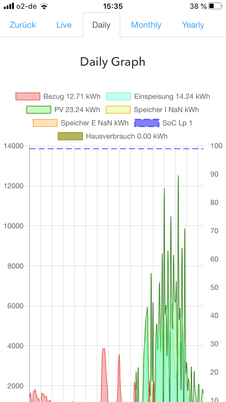 - Im Daily Graph ist der Hausverbrauch permanent 0.