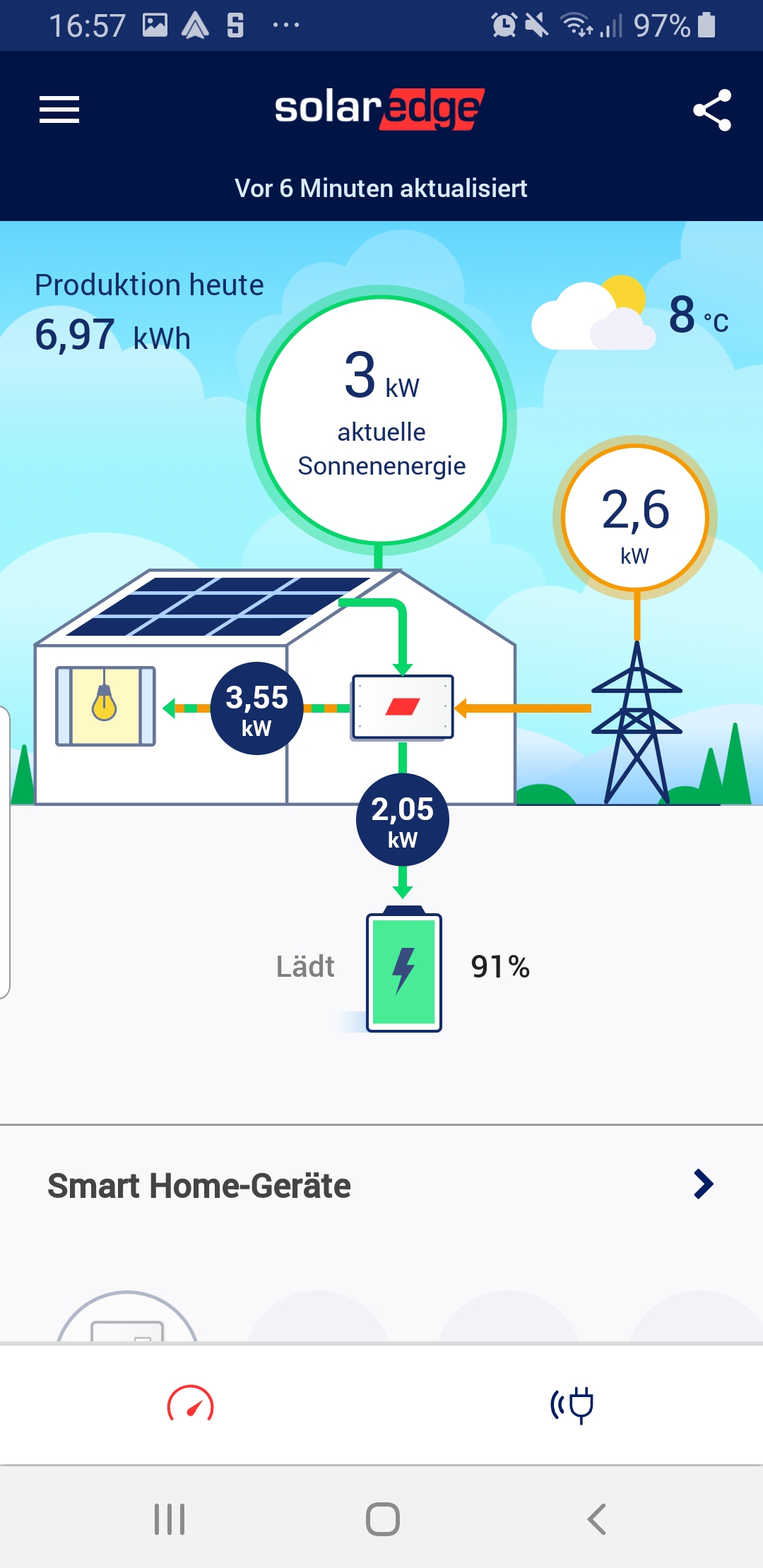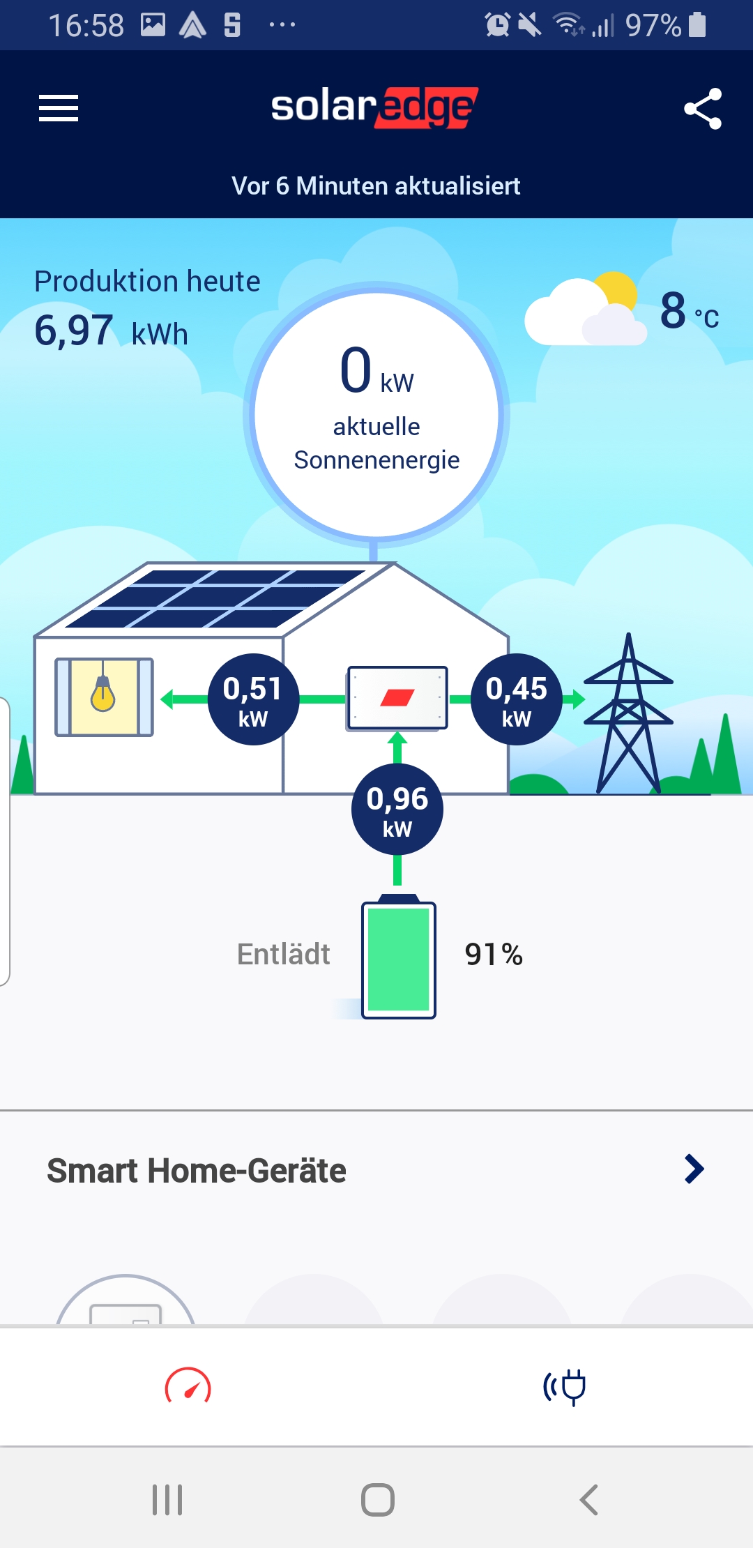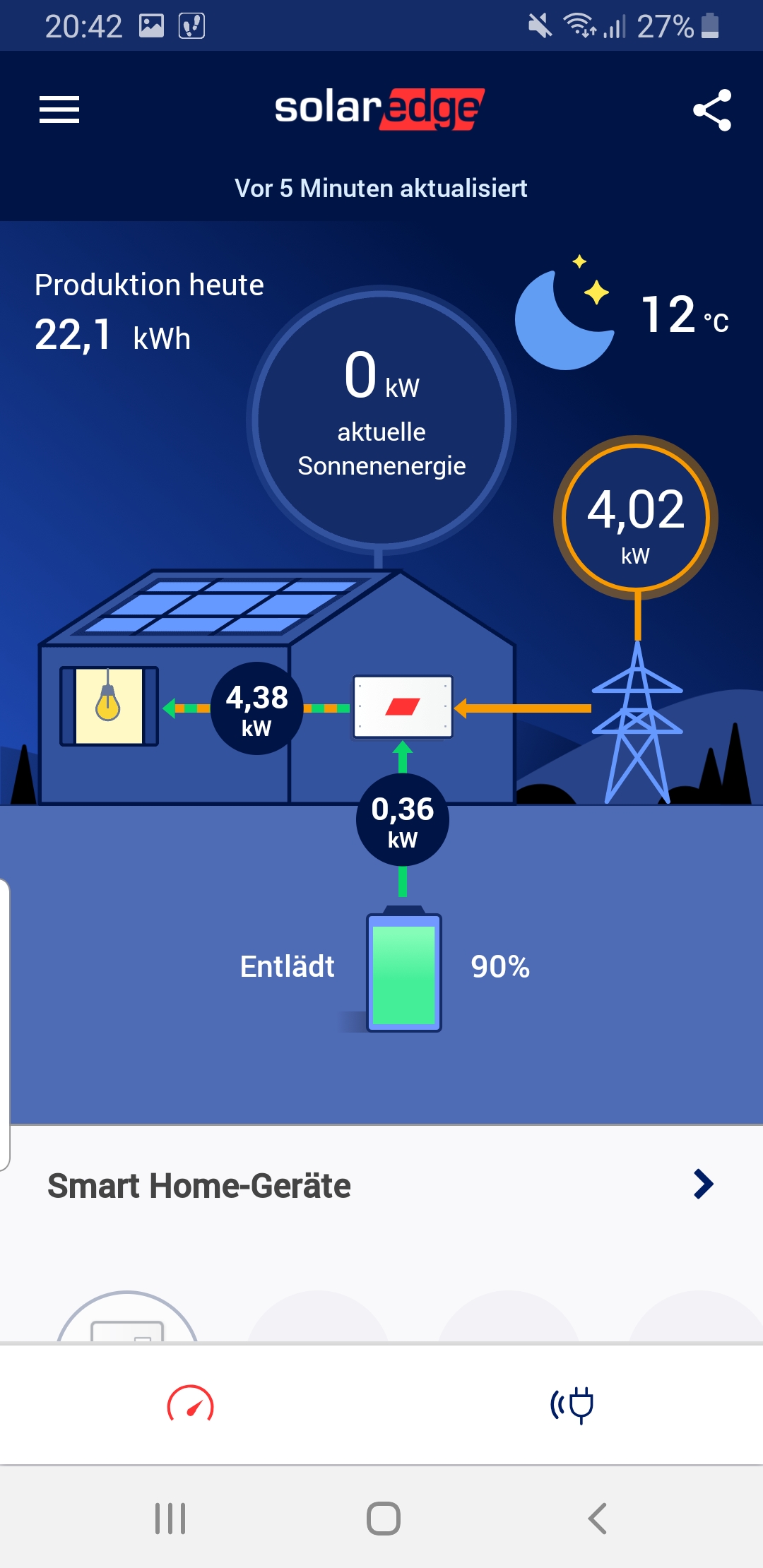 Mal wird auf einmal wieder Energie erzeugt (obwohl die Sonne längst weg ist), dann verbraucht das Haus unrealistische Werte, dann wieder wird der Akku aus dem Netz geladen oder lädt direkt ins Netz.