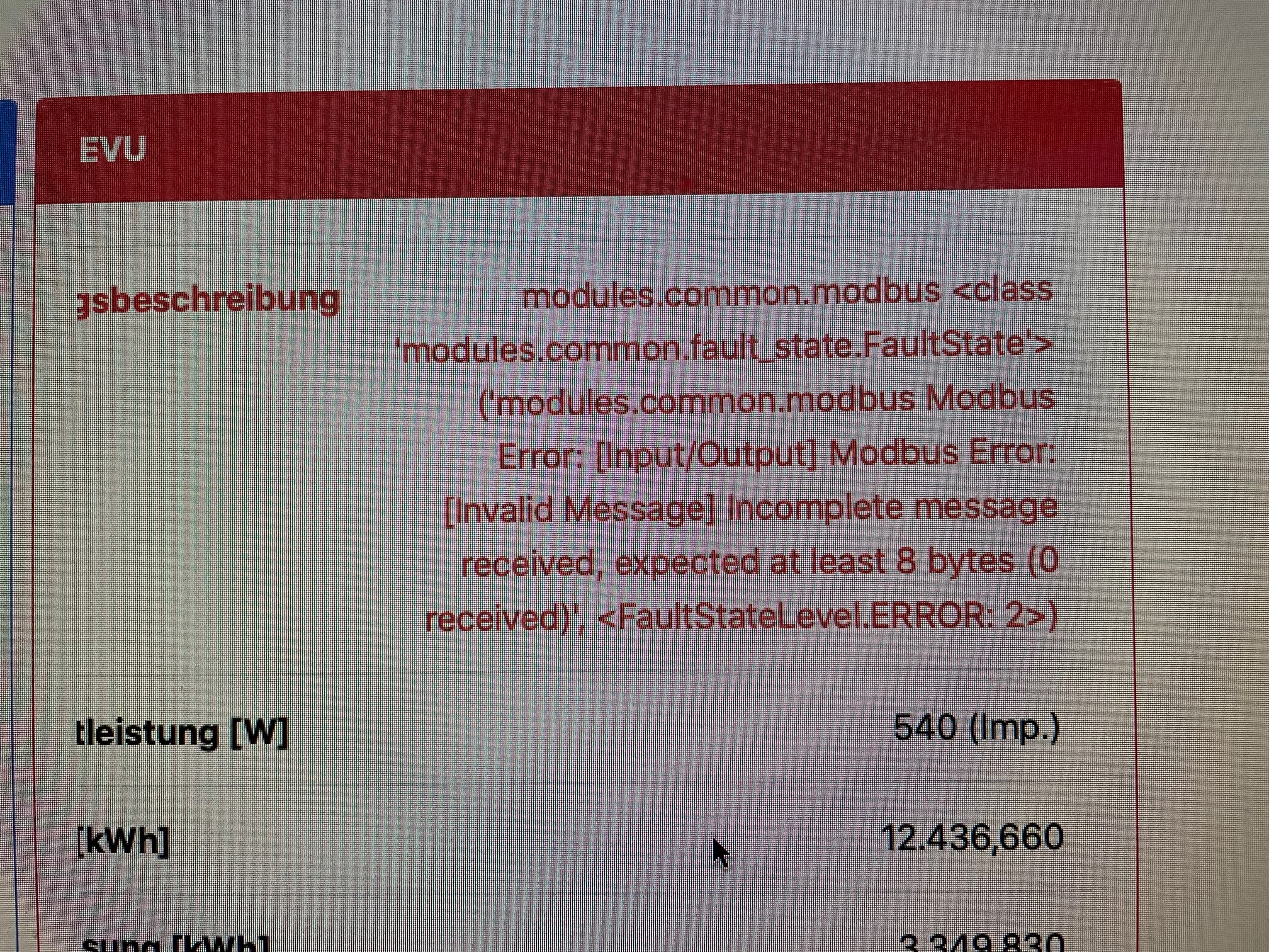 seit dem update habe ich folgende fehlermeldung bei EVU & PV