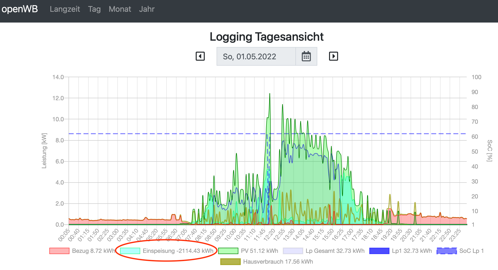 Dabei ist offensichtlich bei den Daten der openWB etwas durcheinander geraten, siehe Anhang. Deshalb meine Frage: Wie kann ich den Wert für die Einspeisung an dem Tag nachträglich ändern? Sonst sind ja auch die Statistiken für den Monat und das Jahr falsch.
