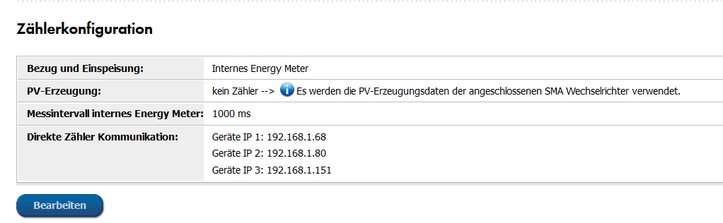 Gerät (HM 2.0) --> Eigenschaften --> Zählerkonfiguration (Direkte Zähler Kommunikation)" drei IP Adressen eintragen. Dort waren bereits die